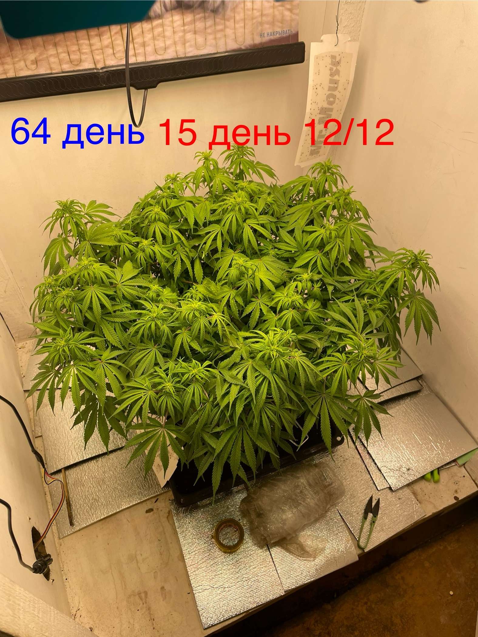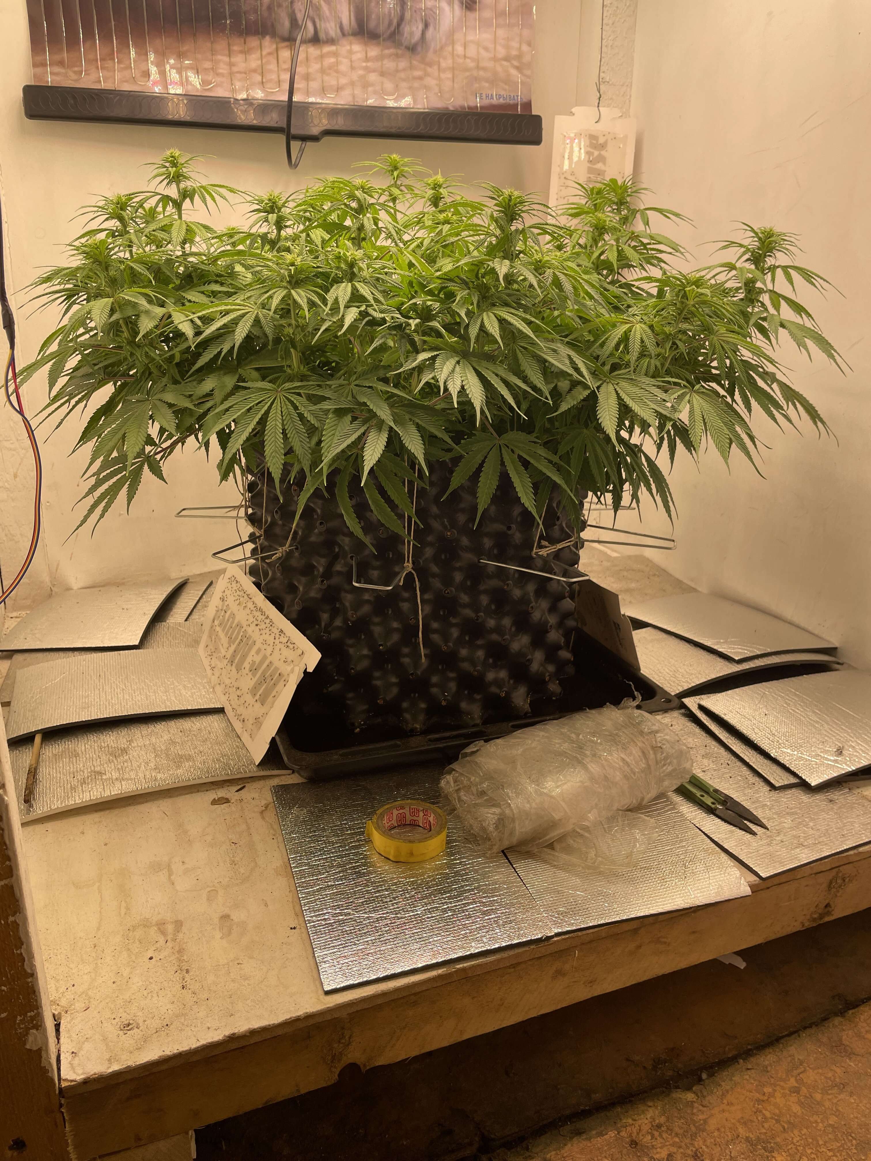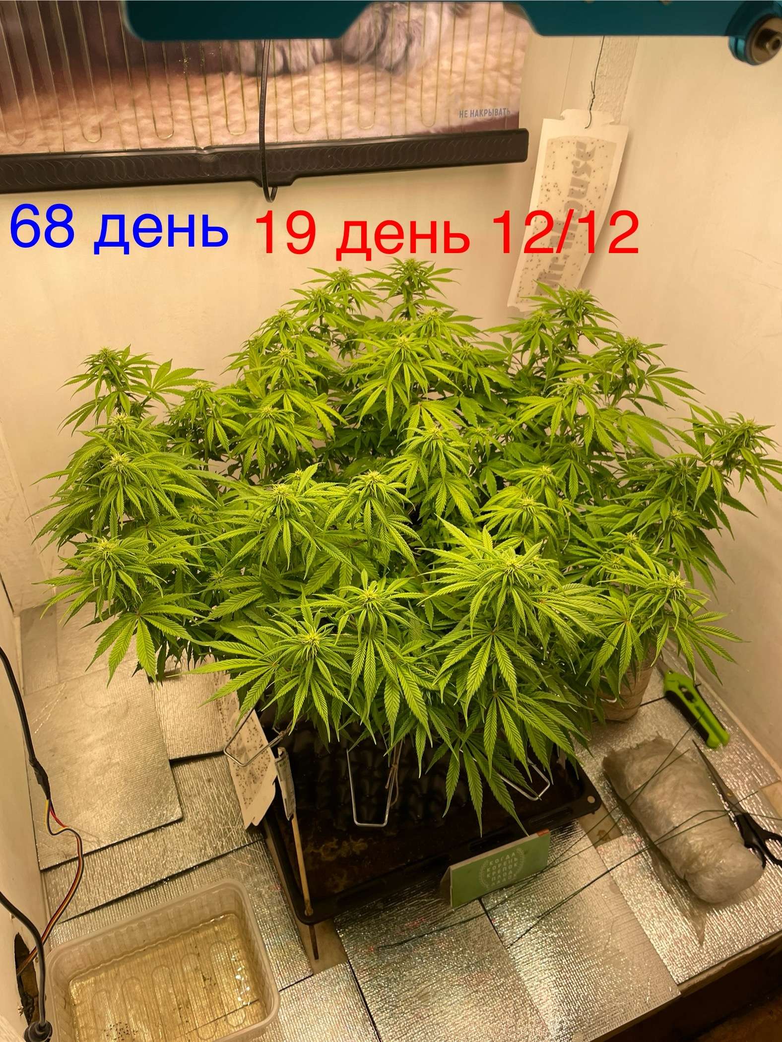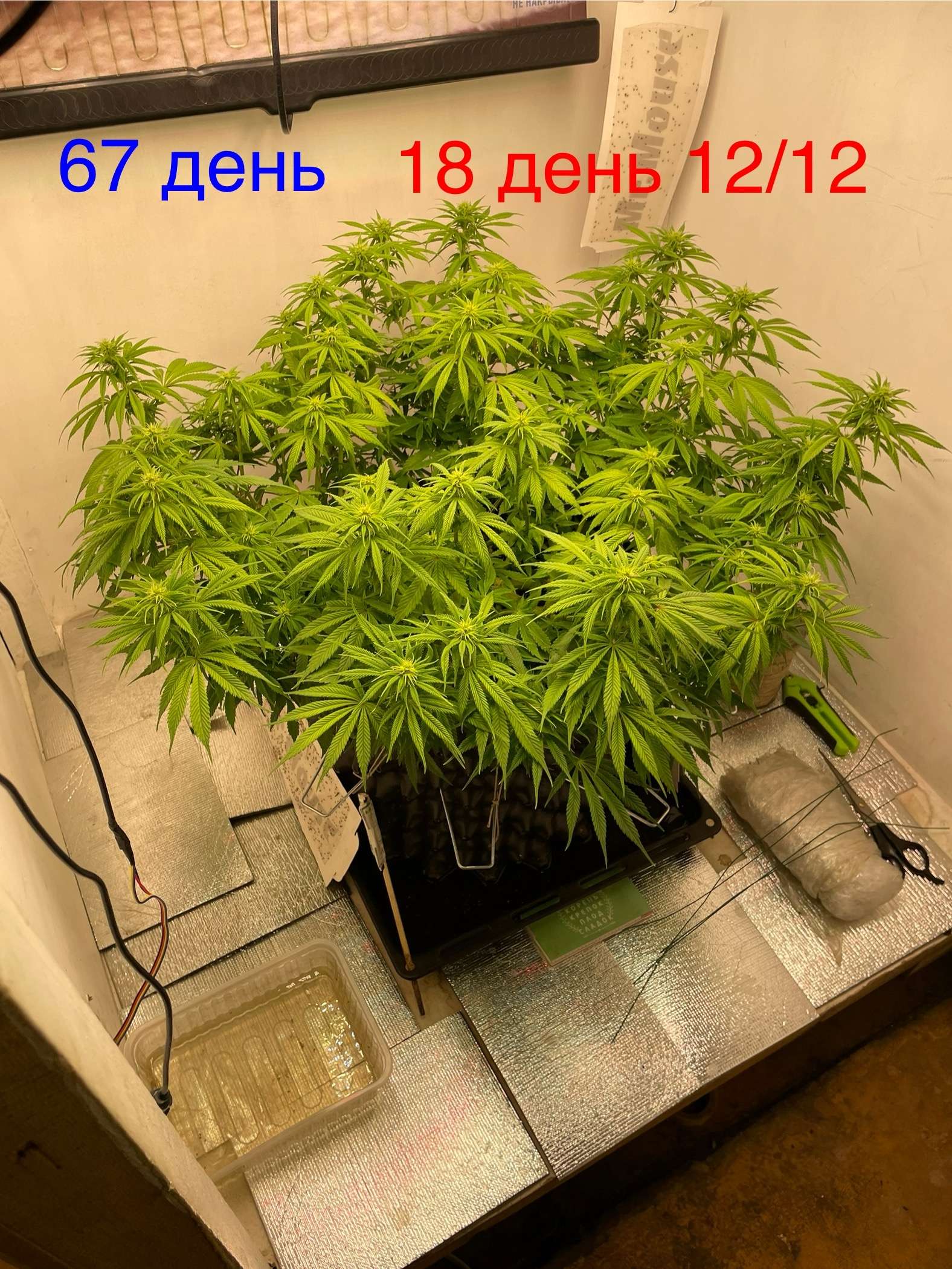 Всем привет сегодня придя домой увидел тусклый цвет листвы и предположил дефицит азота, и пролил компот 3 литра(калмаг 0,8мл/л,гров 1мл/л, биохейвен 2 мл/л и альгаамик 1мл/л, и акти вера 2мл/л) в дренаж ушло нормально около литра следовательно ранно я убрал грелку из бокса вернул на место, возможно куст подмерз и стал меньше пить, будем посмотреть как пойдут дела дальше…